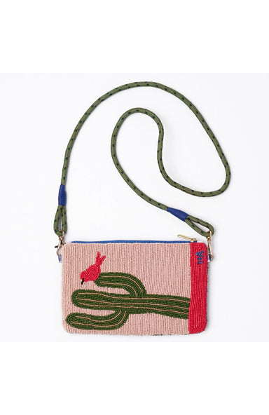 This fully beaded clutch showcases a striking red boot motif with meticulous seed bead detailing. The detachable cord strap offers versatility—wear...