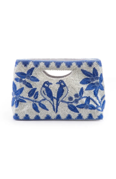 This Clutch captures timeless elegance with its classic blue-and-white design. Secured with a stylish self-handle, this clutch showcases intricate ...