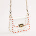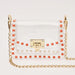 Score with the biggest winner in our clear handbag playbook - The Jackie! The Jackie changed the handbag game by proving that handbags could be functional and chic. This style includes orange square metal studs and a gold chain. The Jackie is NCAA and NFL-compliant and the ideal size to hold your wallet, phone, keys, lip gloss, and a few other small items.