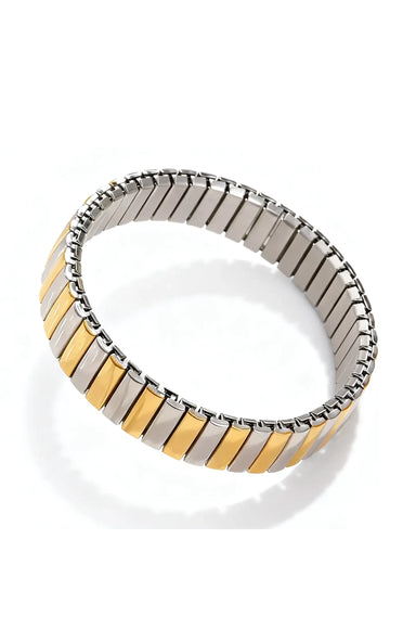 A bold stretch bracelet featuring smooth alternating gold and silver tiles. Designed with a comfortable stretch fit and a sleek 12mm width, this mi...