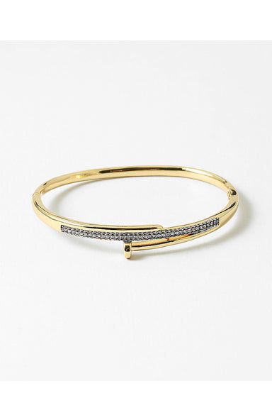 The Sleek Tennis Wrap Bangle features a double row of sparkling stones set on a gold finish, creating an elegant and timeless look. Designed with w...