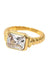 A textured gold ring with a bright emerald cut CZ for a modern, eye catching shine. Made with water resistant stainless steel and easy to style alone or stacked.