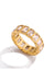 A bold gold band set with bright Zirconia Stones for a clean modern shine. Water resistant and perfect for stacking or worn alone as a statement piece.