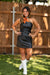 The structured bodice and smocked back ensures a comfortable, flexible fit. A no-slip grip tape along the inner top edge helps the dress stay in place throughout the day or evening.