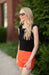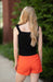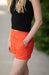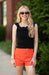 Bright, bold, and polished—these structured orange shorts are the perfect pop of color for your warm-weather wardrobe. Designed with a tailored fit and sleek front pockets, they blend comfort with sophistication. The elevated fabric gives them a dressy feel, making them ideal for everything from brunch dates to outdoor events. Pair with a crisp blouse or a casual tank for an effortlessly put-together look.
