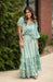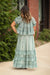 Forever femme in a frilly, floral-printed design, this stunning set features a tiered short-sleeve top and coordinating high-rise tiered maxi skirt for the sweetest done-in-one design. Relaxed, flowy fit. Top: V-neckline, smocked hems, semi-sheer fabrication, tiered design, tie closure at front, slightly puffed sleeves. Skirt: High-rise style, tiered design, smocked elastic waistband, pleating throughout.
