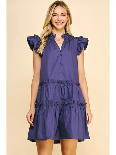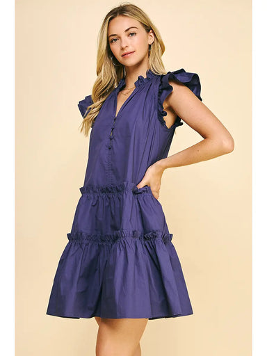This midi dress features a charming tie waist and feminine ruffle sleeves, creating a sweet and stylish look. The flowing fabric and comfortable fi...