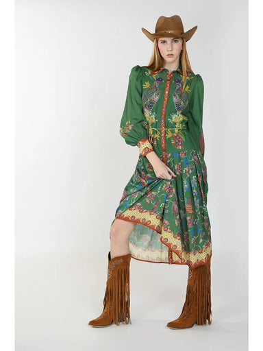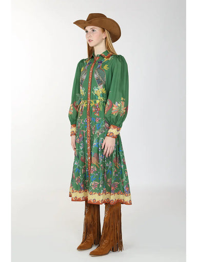 The Emerald Canopy Shirt Dress delivers timeless elegance with its flowing maxi length and sophisticated emerald color. Its classic shirt dress sil...
