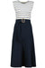 A modern take on everyday dressing, this mixed-media dress pairs a striped knit bodice with a fluid woven skirt for effortless contrast and ease. Finished with a defining belt at the waist, it transitions seamlessly from daytime polish to evening plans with a simple change of shoes.