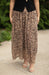 This light beige maxi skirt features a subtle leopard print pattern and a flowing silhouette that enhances comfort and movement. With an elastic waistband, it ensures a flexible, secure fit suitable for various body shapes. Ideal for both casual and dressy occasions.