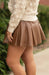 The Ellis Skort combines the rich texture of faux leather with finely crafted pleats, delivering a sophisticated yet edgy piece ideal for fall dressing.