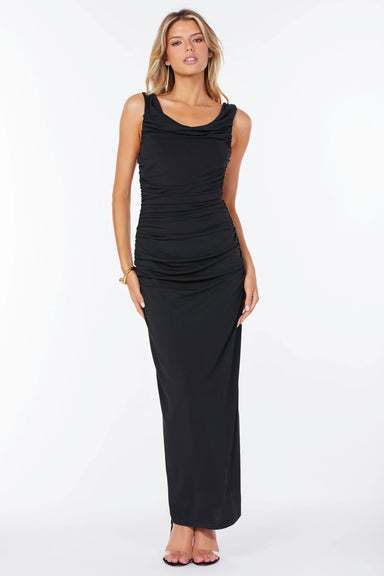 The Daytona Pleated Maxi Dress features flowy fabric and meticulously structured hemmed layers, creating an elegant silhouette with graceful moveme...