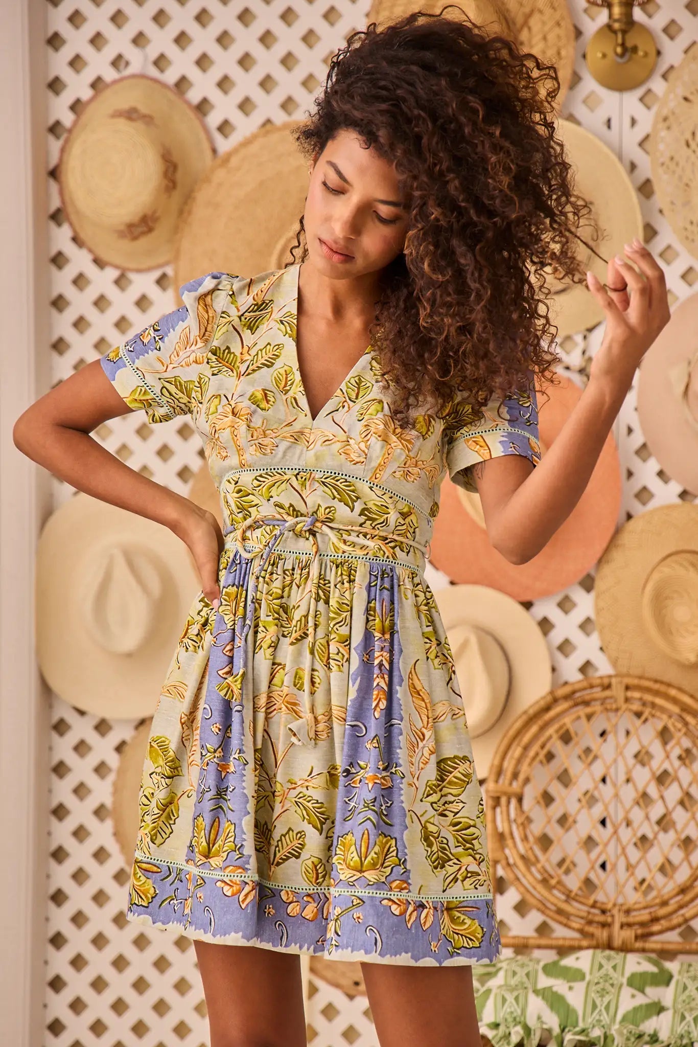 The Roan Dress is your go-to mini for summer occasions that call for something special. With its flattering V-neckline, fitted bodice, and full skirt, it offers a romantic yet refined silhouette. Short sleeves and delicate ladder trim inserts add soft texture, while the corded waist tie with fabric bell details brings a playful, whimsical touch. Whether you're heading to a cocktail party or a sunset celebration, this standout style is designed to make you feel your best.