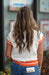 This cap-sleeve sweater channels old-school varsity style with updated rope embroidery and bold team color accents at the neck, sleeves, and hemline. Crafted from a soft acrylic-cotton blend, it offers a nostalgic yet elevated take on game day dressing. Pair it with wide-leg jeans or our matching skirt for a fresh spin.