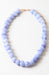 This striking 16" resin bead necklace features luminous blue lace detailing that captures light beautifully, making it an ideal statement piece for resort wear and warm-weather styling. The lightweight construction ensures all-day comfort while delivering the bold visual impact that elevates any spring or summer ensemble.