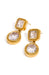 Bold brilliance, redefined. These waterproof earrings feature radiant cushion- and round-cut stones in a sleek gold bezel setting—designed to elevate your everyday and shine through every splash. Details: PVD Stainless Steel Gold Waterproof, Water Resistant, Tarnish Proof.