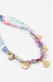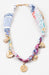 This versatile scarf necklace features decorative heart and coin charms in rich purple and blue tones, allowing you to effortlessly elevate any outfit with layered sophistication.