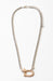This mixed metal carabiner necklace combines polished silver and warm gold tones with a striking clear crystal accent, creating a versatile piece that transitions seamlessly between casual and refined styling. The functional carabiner design adds contemporary edge while the precious metal combination ensures lasting appeal and everyday wearability.
