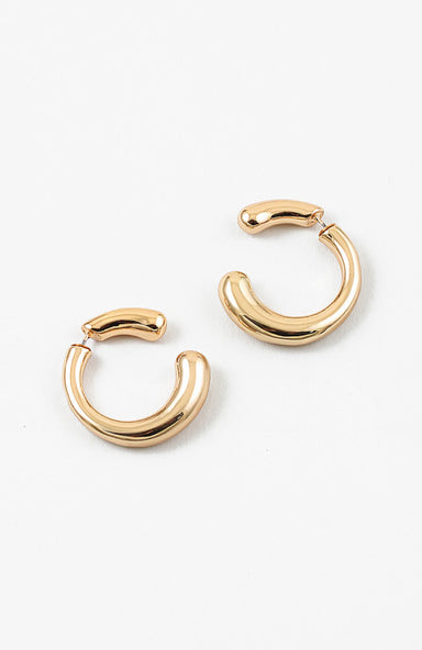 Timeless geometric hoops finished with a luxurious gold dip for an understated yet sophisticated everyday accessory.