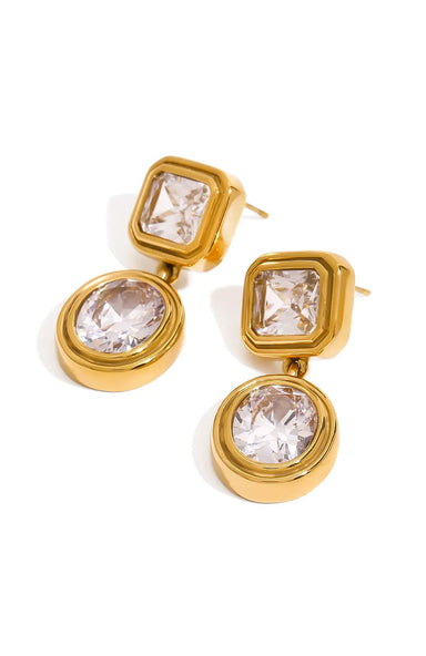 Bold brilliance, redefined. These waterproof earrings feature radiant cushion- and round-cut stones in a sleek gold bezel setting—designed to eleva...