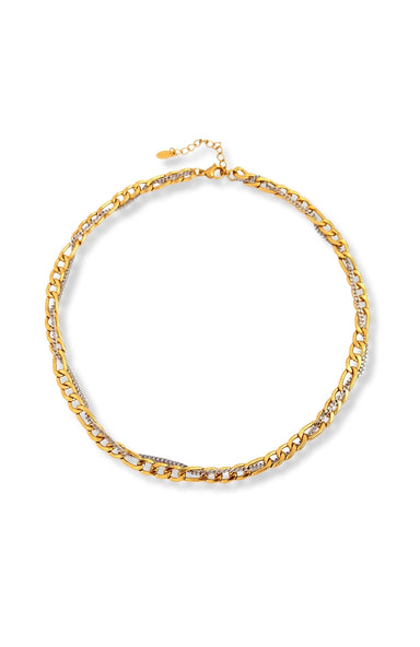 A sleek update on a classic, this water-resistant Figaro chain is accented with bezel-set stones that catch the light at every angle. Its bold link...