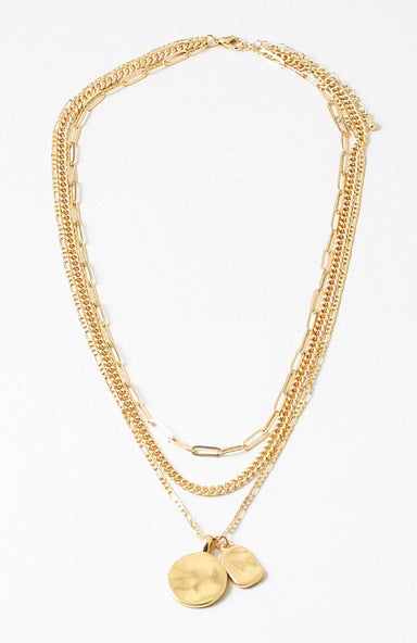 Elevate your everyday style with this sophisticated 16" multilayer disc charm necklace, featuring delicate gold-dipped links that create dimensiona...