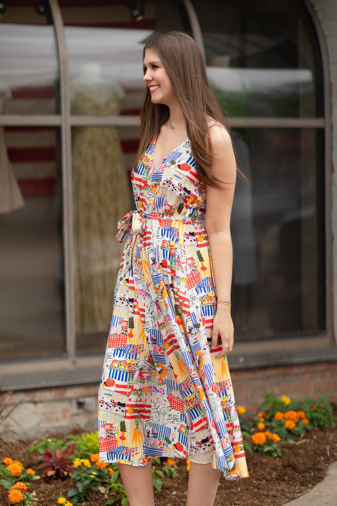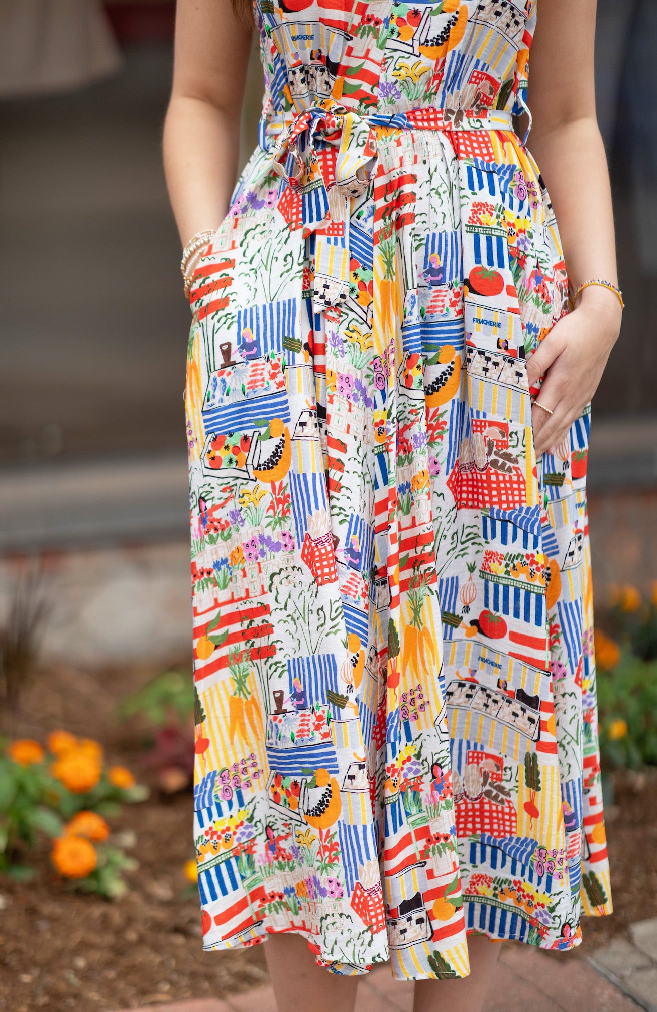 Featuring an exclusive FRNCH print, this sleeveless beauty combines style and comfort in one flowing silhouette. The removable belt lets you customize the fit to your liking—cinch it in for a more defined shape or leave it relaxed.