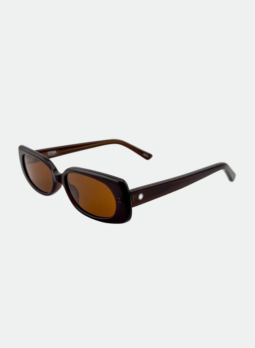 The rectangular frame, defined by sharp, angular edges, strikes a confident balance between modern precision and timeless design. Crafted from polished acetate with nylon lenses, it offers a bold silhouette with understated refinement.