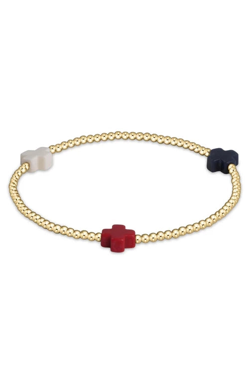 - Made with 2mm, 14kt gold-filled beads, and our signature cross in red, off-white, and navy