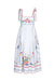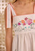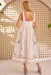 The Stefy Dress is a summer showstopper, combining artisanal detail with breezy elegance. Designed with tie straps, a flattering empire waist, and a full midi skirt, it's finished with vibrant multicolor embroidery, ladder lace trim, and blanket stitch edging for a handcrafted feel. Made from cotton canvas with a structured bodice and back zip closure, it's equal parts polished and playful—ready for everything from garden parties to getaways.