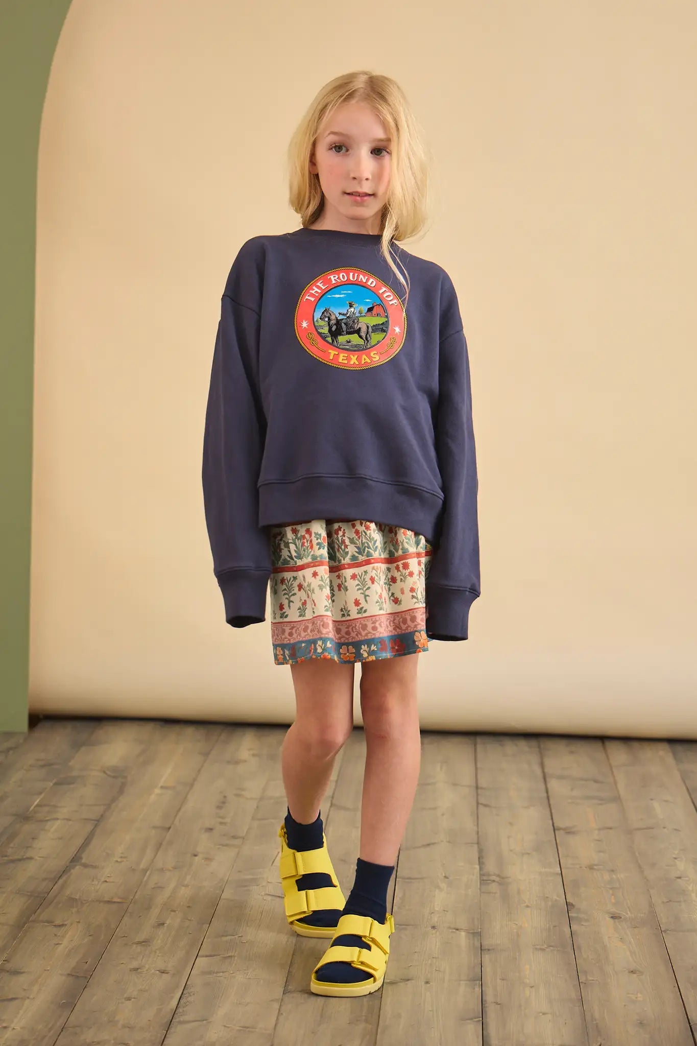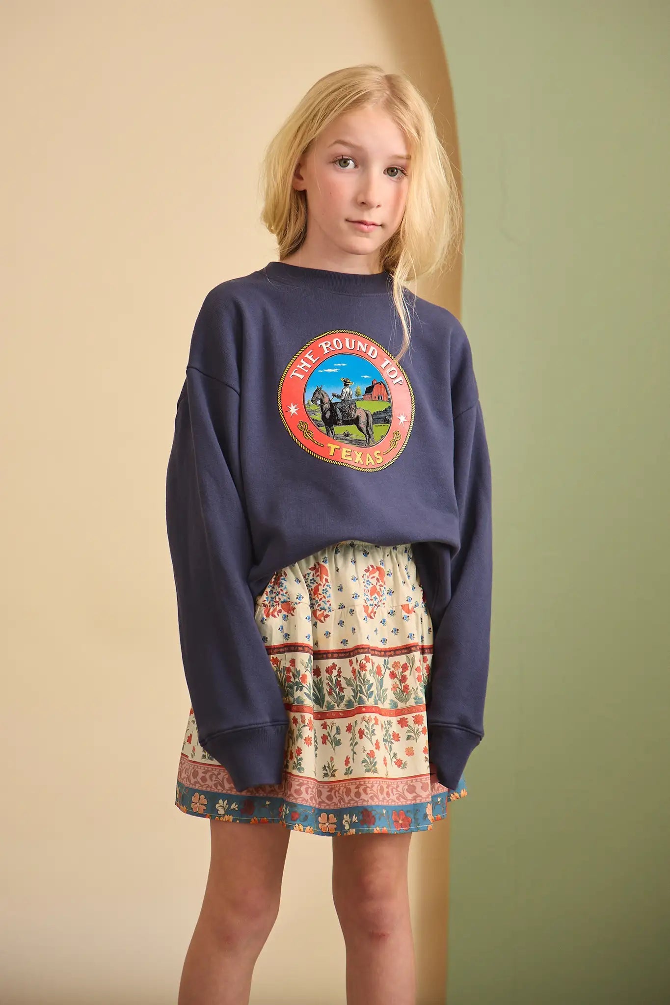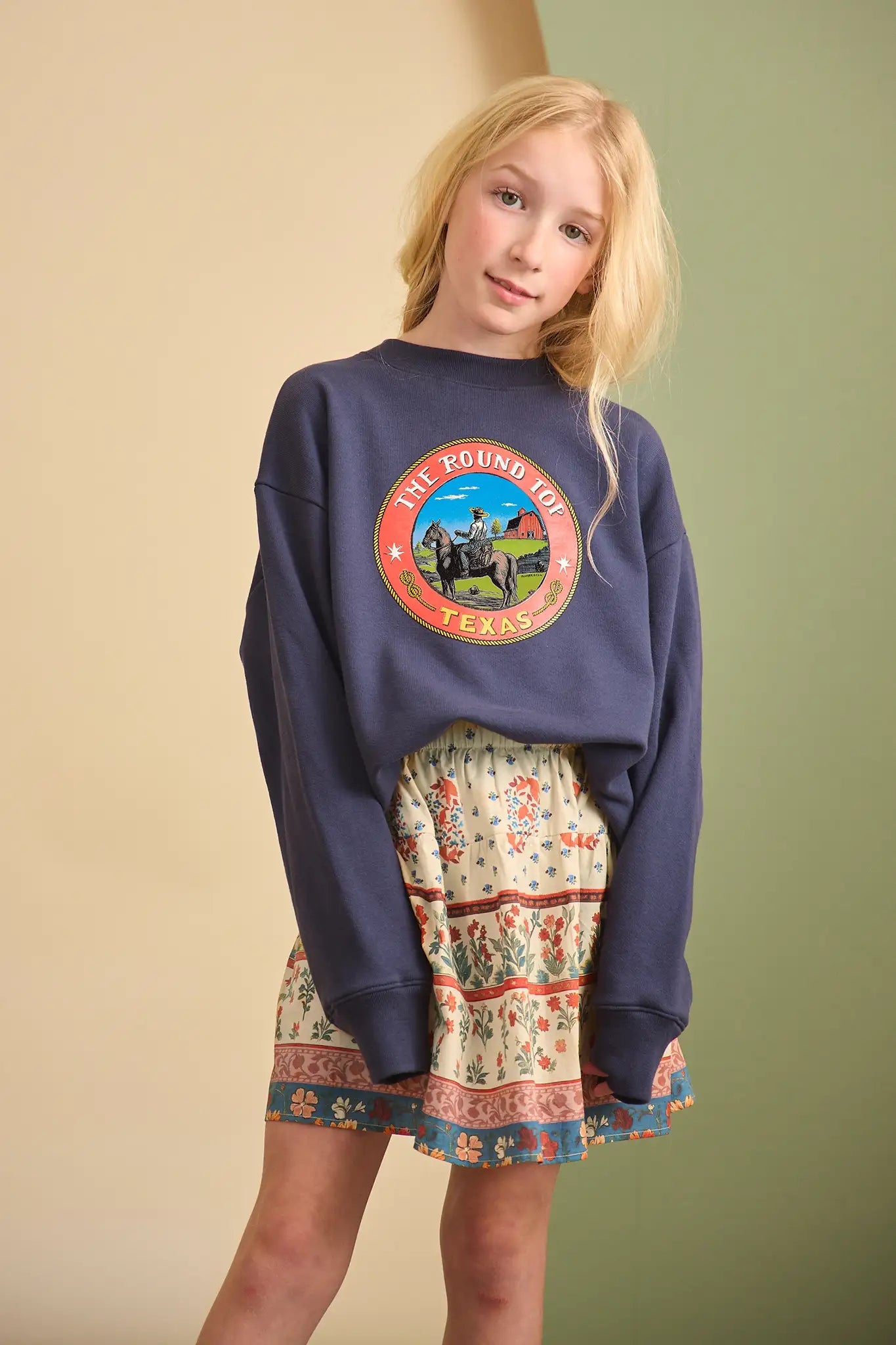 The Hunter Bell Kids Round Top Sweatshirt is a cozy staple with a playful twist. Made from soft French terry, it features a classic crew neckline, long sleeves, and a relaxed fit that’s perfect for school days, playdates, and everything in between.